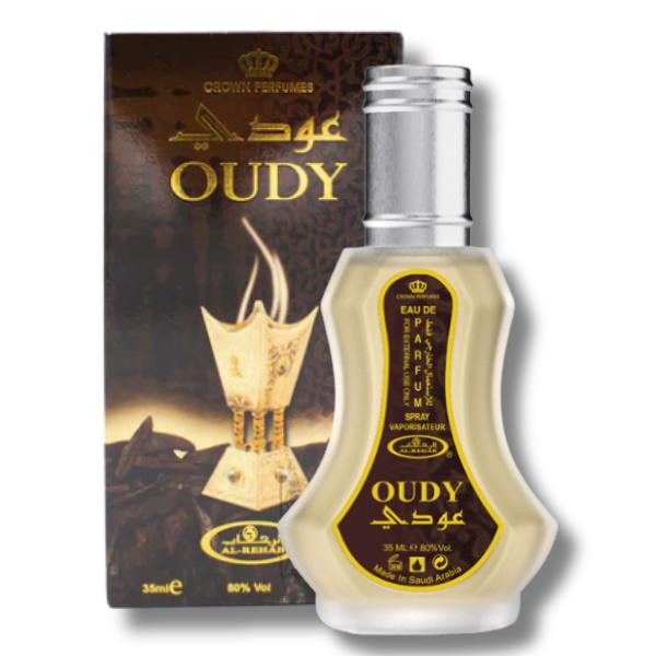 Oudy by Al-Rehab 35ml Mini Perfume Spray Travel Size Unisex Oud Fragrance Sweet Spicy Musky Scent Long Lasting Rich Cologne Arabian Dubai Inspired Aroma Free Delivery
